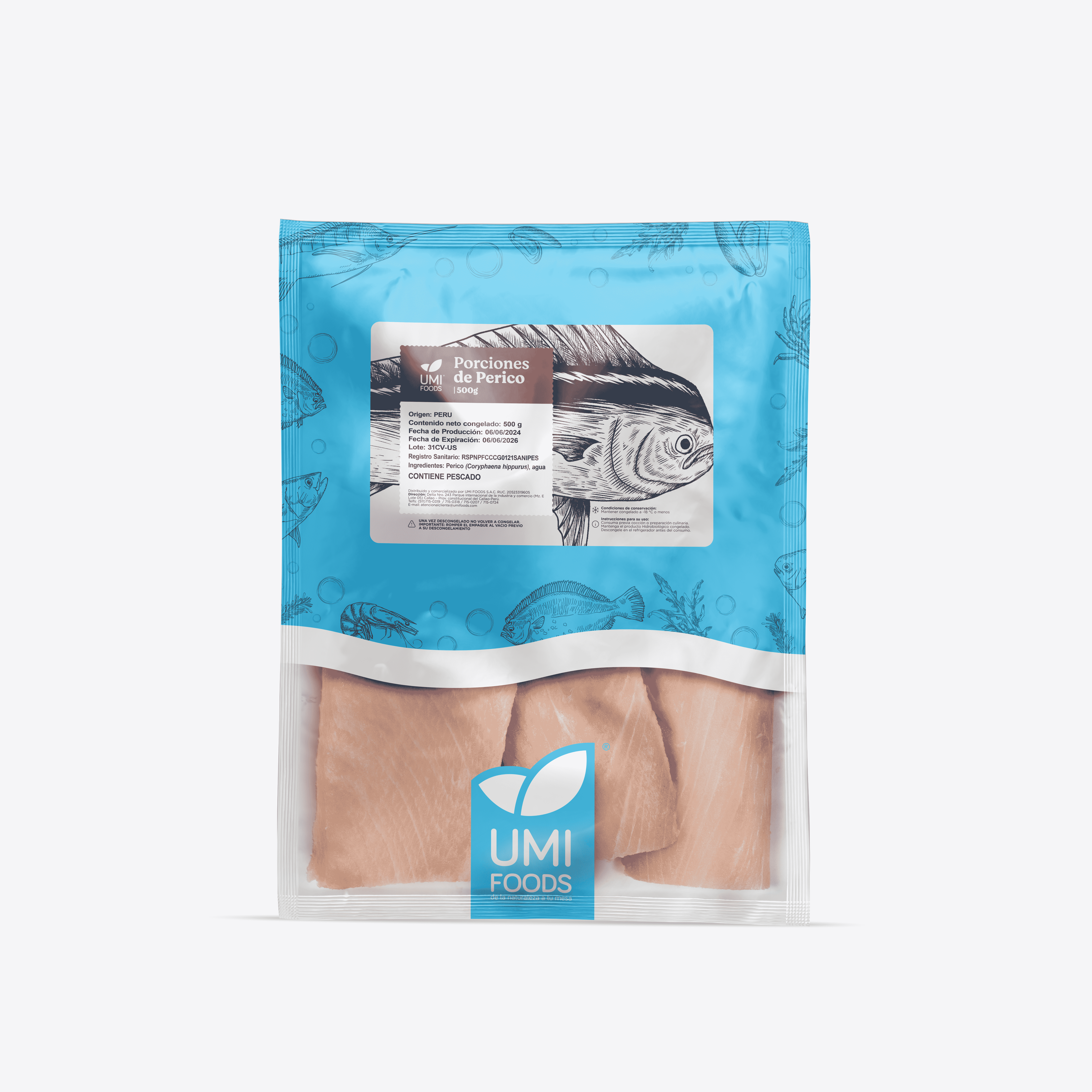 Porciones de perico congelado, sin piel, sin espinas