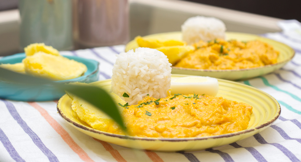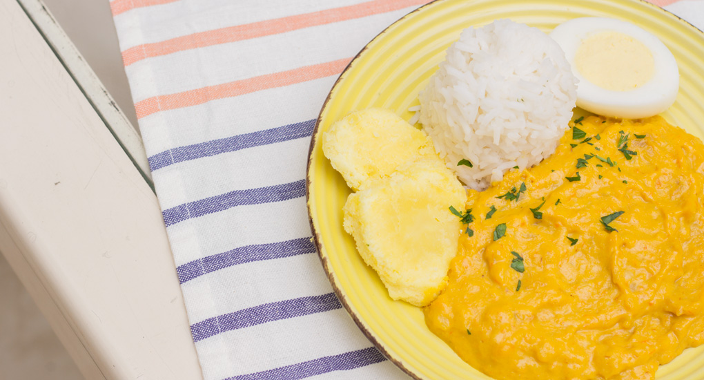 Una vez listo, mezclamos la basa desmenuzada con la crema de ají. Servimos junto con la papa y el huevo cortados en mitades y una porción de arroz.