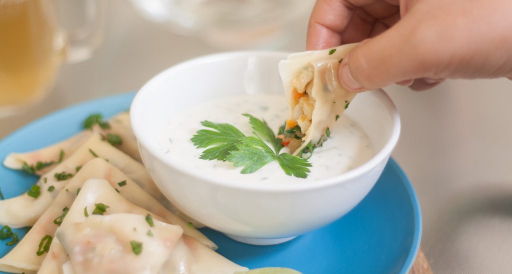 Para nuestro dip, mezclamos el queso crema con la crema de leche hasta formar una crema homogénea. Agregamos el perejil y la cebolla china picado finamente y sazonamos con sal y pimienta al gusto. Se puede sustituir la crema de leche por yogurt natural para una versión más saludable.
