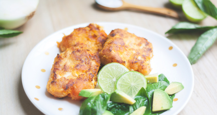 Hoy les compartimos una receta super fácil de hacer, y son unas croquetas de pescado que se hacen con puré de camote en lugar de papas como usualmente utilizamos para darles más textura y sabor, y están recubiertos de un poquito de harina. Los camotes están llenos del potente antioxidante betacaroteno , que se ha relacionado para prevenir enfermedades del corazón así que anímate a hacerlo en casa junto con nuestro deliciosa reineta.