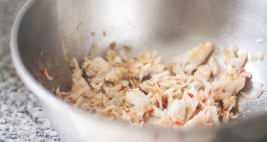 Una vez tenemos listos estos tres ingredientes, los juntamos en un bowl mediano y procedemos a mezclarlos , con una cuchara de palo o un tenedor hasta formar una masa.