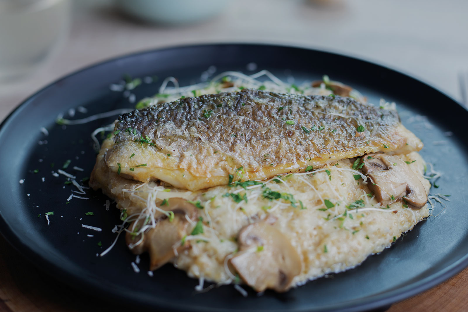 1. Marinar el filete de lubina con los dientes de ajo, aceite de oliva, sal y pimienta.
