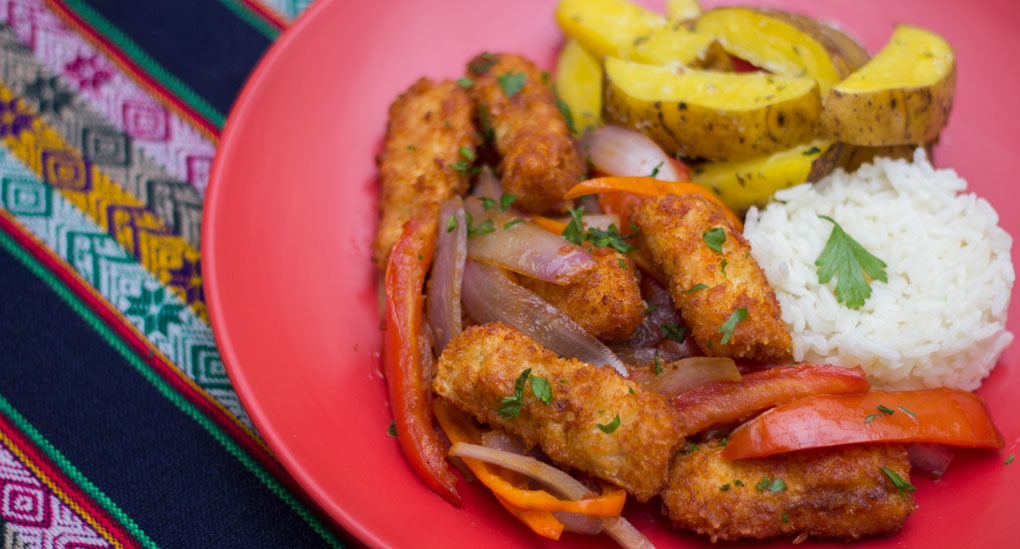 Procedemos a saltar la cebolla, el ají amarillo y el tomate. Todo cortado en bastones. Una vez comiencen a tomar un color dorado agregamos el pescado empanizado y el sillao o salsa hoisin. Sazonamos con sal y pimienta la preparación. Además, ponemos perejil picado encima.