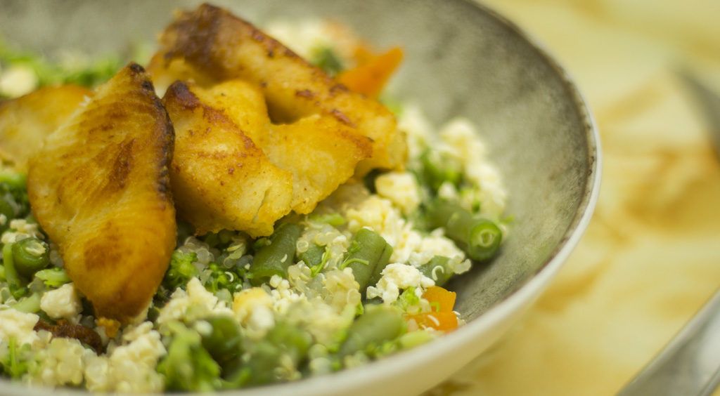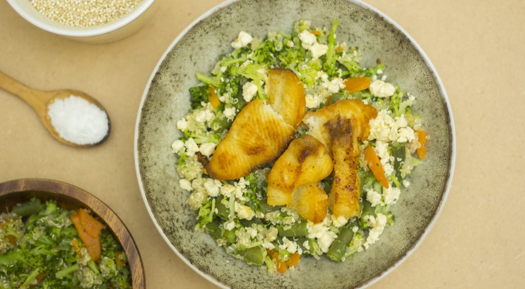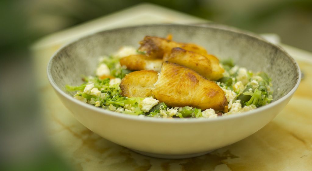 Cuando piensas que las ideas se han terminado, una ensalada deliciosa de brócoli y quinua acompañada de unos steaks de tollo es perfecta para un almuerzo fresco y liviano en casa.